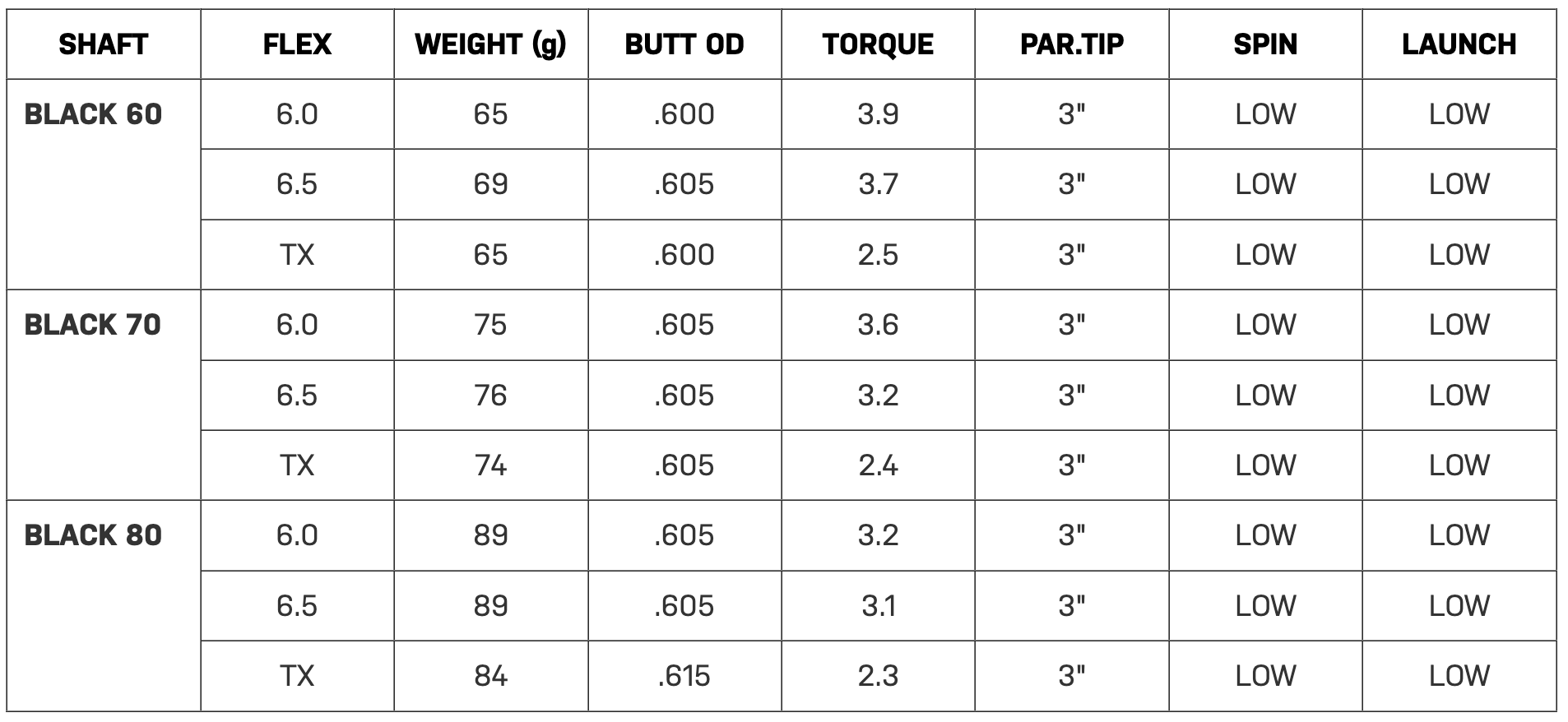 - Spin - Low: Spin is the amount of backspin that the ball has. The designs of certain golf shafts can promote more or less spin so keep this in mind when looking for a shaft to maximize your game.
