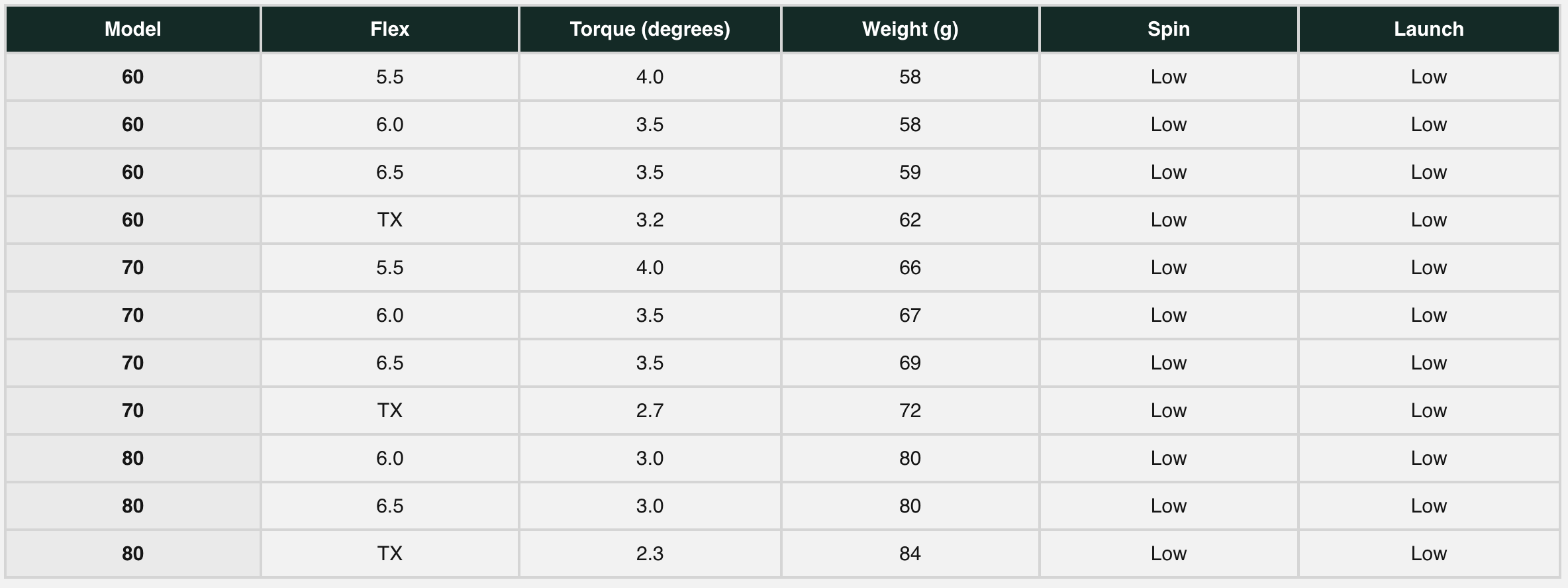 - Spin - Low: Spin is the amount of backspin that the ball has. The designs of certain golf shafts can promote more or less spin so keep this in mind when looking for a shaft to maximize your game.
